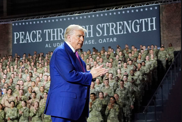 特朗普先前在卡塔爾烏代德空軍基地,向美軍喊話。