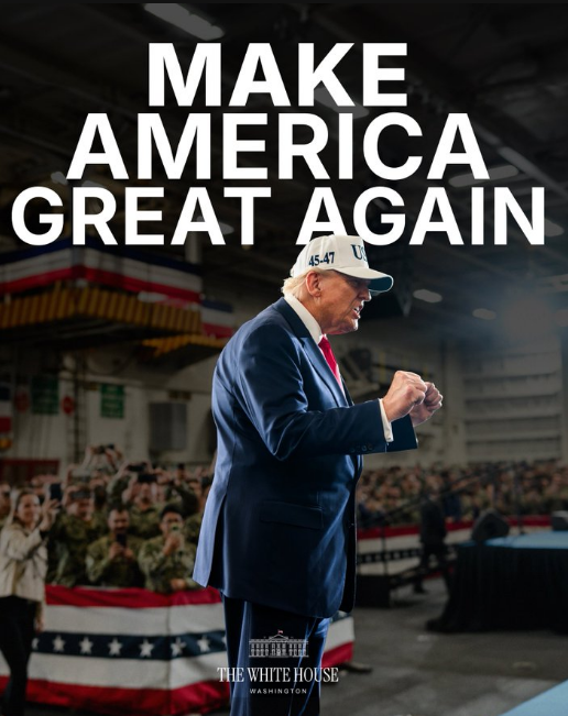 白宮發(fā)布的特朗普照片,配上“讓美國再次偉大”的斗大標語