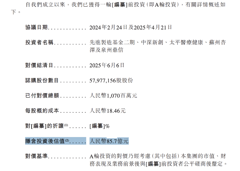自成立以來(lái),先聲再明已完成一輪融資(即A輪投資),其隱含投資后估值為85.7億元。