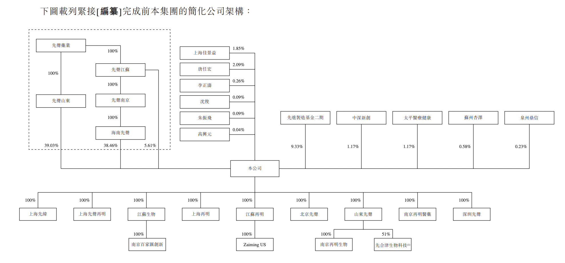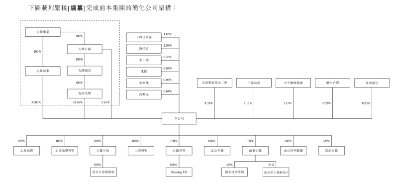 IPO前,先聲藥業(yè)通過(guò)其全資附屬公司間接控制合共約占先聲再明已發(fā)行股本總額83.10%的股本所附帶的投票權(quán),其中約39.03%由先聲山東持有,約38.46%由海南先聲持有,及約5.61%由先聲江蘇持有。