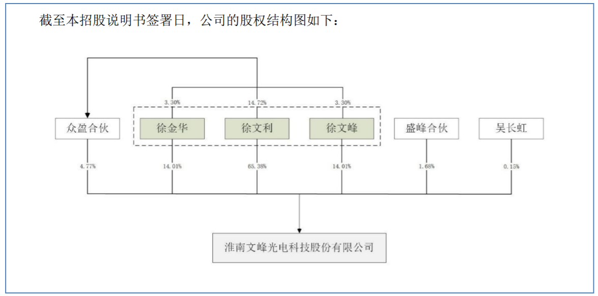 股權(quán)方面,徐文利、徐文峰、徐金華系兄弟、兄妹關(guān)系,截至本招股說明書簽署日,三人分別直接持有公司3922.80萬股、840.60萬股、840.60萬股,合計(jì)占公司總股本的93.40%,同時(shí)徐文利為公司股東眾盈合伙執(zhí)行事務(wù)合伙人,通過眾盈合伙能夠間接控制公司4.77%的表決權(quán),故徐文利、徐文峰、徐金華共計(jì)控制公司98.17%的表決權(quán),對(duì)公司股東會(huì)的決議具有實(shí)質(zhì)性影響。