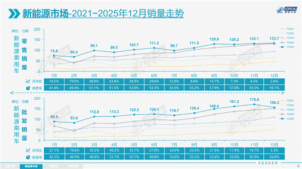 全年來看,2025年新能源乘用車?yán)塾?jì)零售滲透率也達(dá)到了53.9%,也意味著,新能源汽車在國(guó)內(nèi)乘用車市場(chǎng)已占據(jù)主導(dǎo)地位。