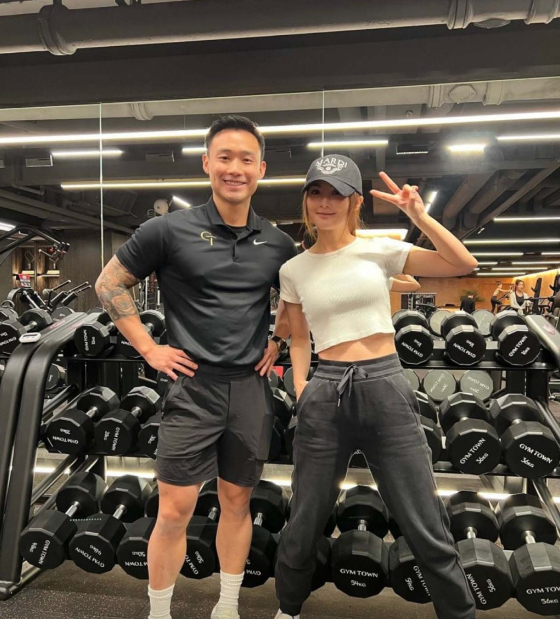 ▲阿Sa去年被爆與年輕10歲的健身教練林俊賢(Elvis)譜出“姐弟戀”。
