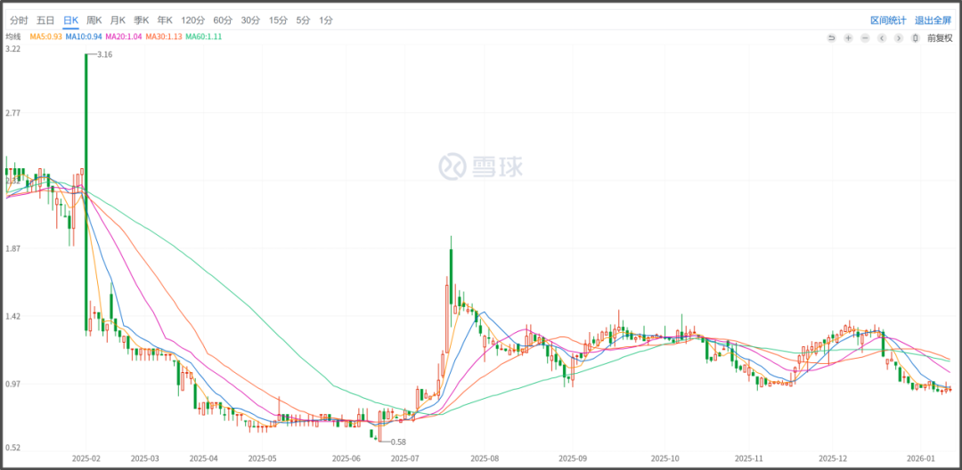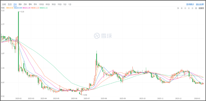 股價(jià)走勢(shì)反映出市場(chǎng)對(duì)相關(guān)概念的態(tài)度。2025年7月,酷派集團(tuán)迎來(lái)一波股價(jià)暴漲,從0.7港元/股左右一度逼近2港元/股,但此后持續(xù)回落,截至今年1月14日早盤收盤僅有0.93港元/股,仍處于“仙股”行列。