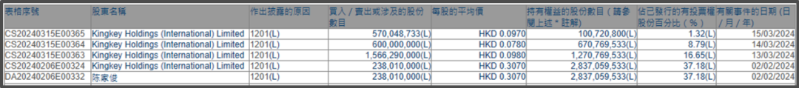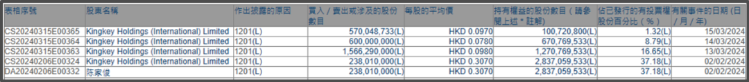 2024年3月,陳家俊陸續(xù)減持了京基金融國(guó)際超過(guò)27億股,每股成交價(jià)低至不足0.1港元,持股比例從37.18%降至1.32%,成交額大約為2.56億港元。至此,這位京基“二代”已基本淡出京基金融國(guó)際,其在該平臺(tái)的資本運(yùn)作以失意收?qǐng)觥?/p>