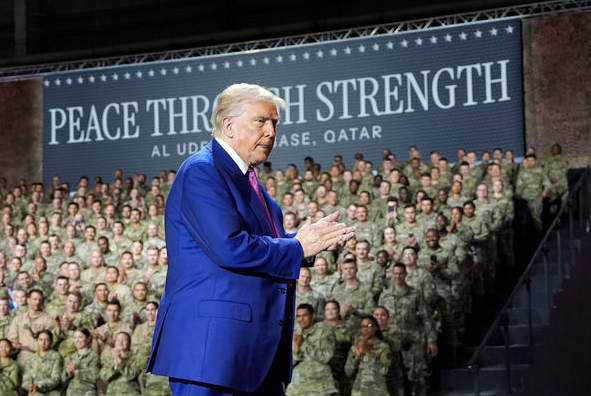 特朗普先前在卡塔爾烏代德空軍基地,向美軍喊話