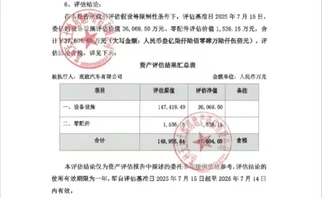 另一份關(guān)于觀致汽車常熟工廠設(shè)備設(shè)施及零配件市場價值的資產(chǎn)評估報告顯示,蘇州天元以2025年7月15日為評估基準(zhǔn)日,對觀致汽車常熟工廠的設(shè)備設(shè)施和零配件的市場價值進(jìn)行了評估。其中,零配件評估凈值與評估原值一致,約為1536萬元。