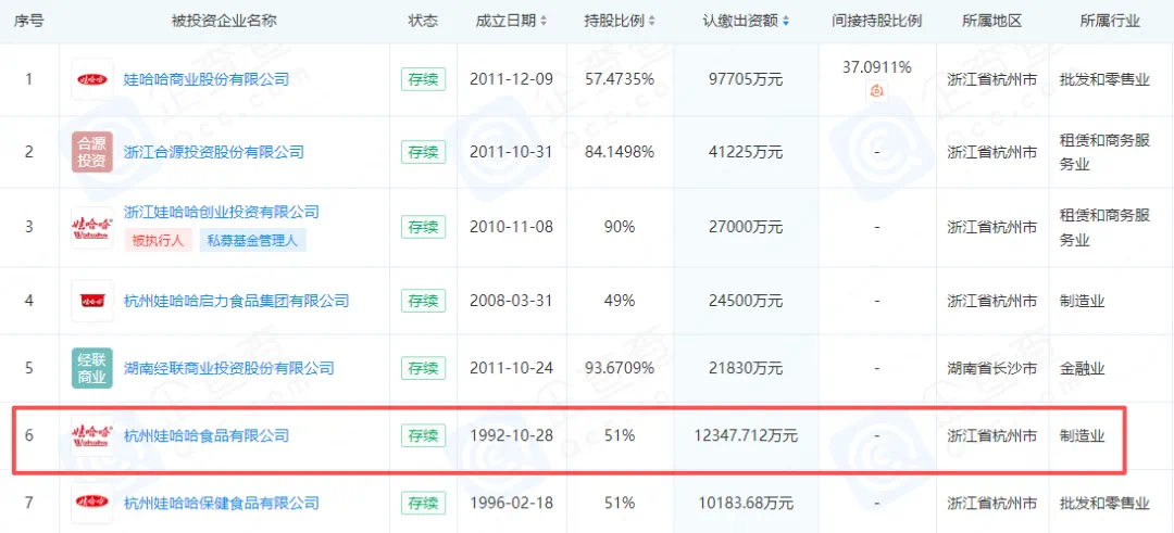 在宏振投資的控股體系中,杭州娃哈哈食品有限公司(下稱“娃哈哈食品公司”)的地位最為關鍵。