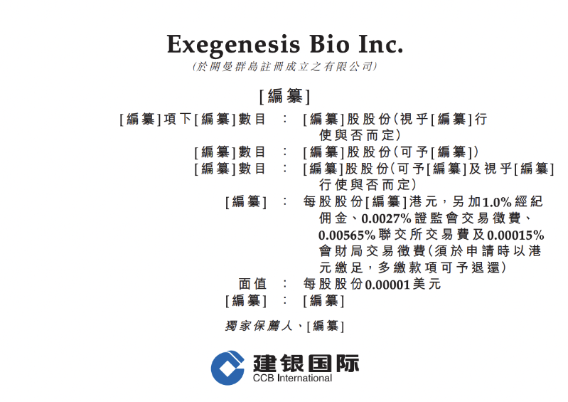 1月14日,Exegenesis Bio Inc.(以下簡稱:嘉因生物)向港交所主板遞交上市申請,建銀國際為其獨(dú)家保薦人。