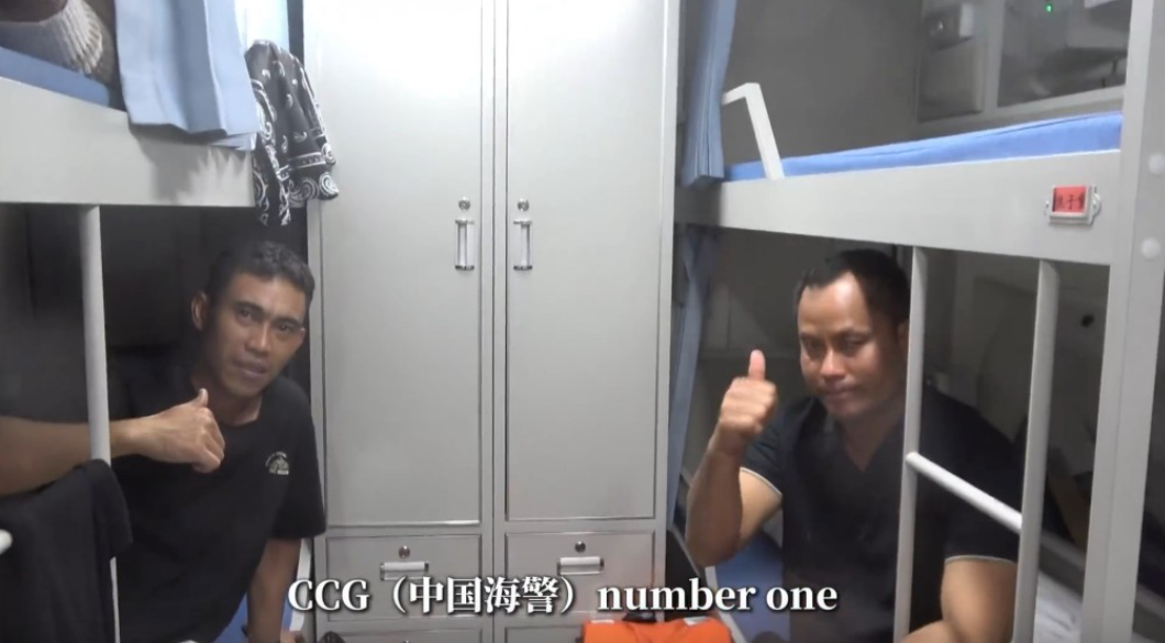 視頻顯示,獲救菲律賓船員不停給中國海警豎大拇指,稱“中國海警NO.1”。