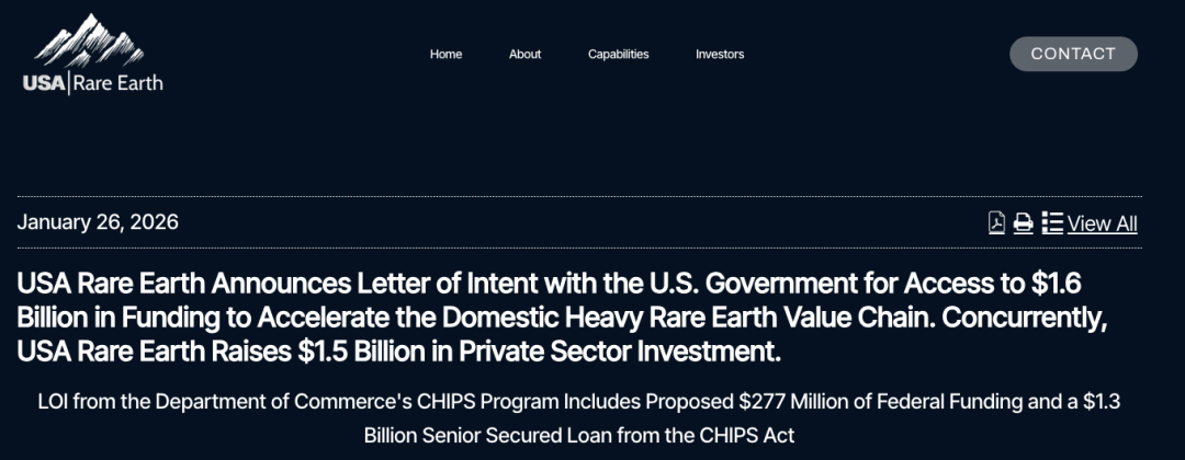 北京時間周一晚間,上周末引發(fā)市場關(guān)注的“美國政府入股美國稀土公司(USA Rare Earth)”的消息終于落地。