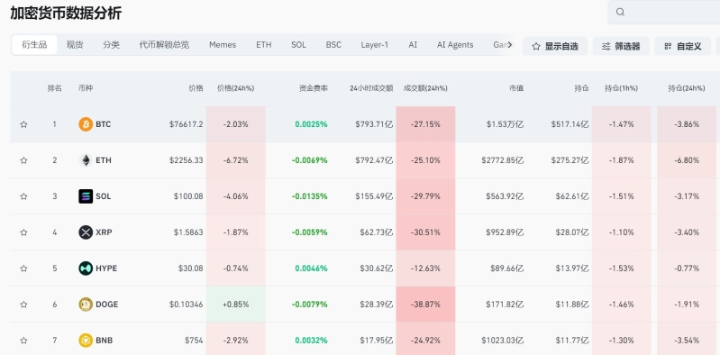 比特幣跌破76000美元,日內(nèi)一度跌超2%。