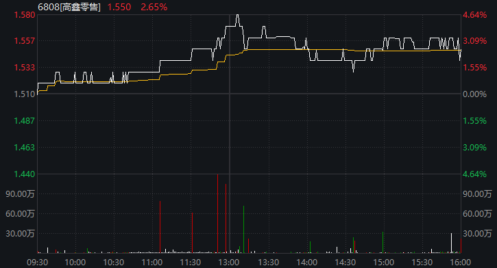 2月3日,高鑫零售上漲2.65%,報收1.55港元/股。
