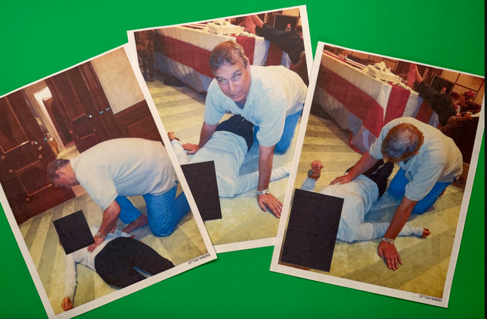 安德魯?shù)拿衷谶@批新文件中出現(xiàn)數(shù)百次。愛(ài)潑斯坦向安德魯介紹一名26歲俄羅斯女子。照片上安德魯跪在躺在地板的女子身上。
