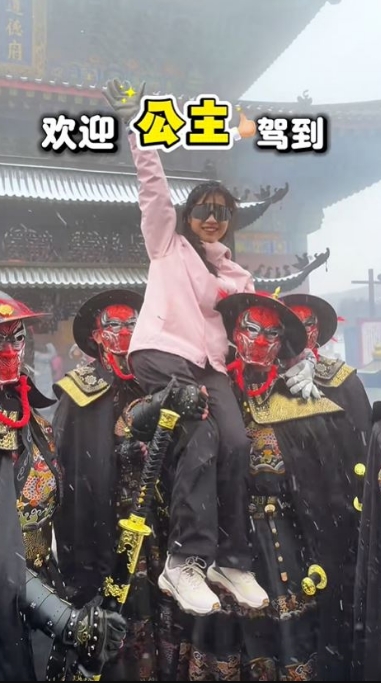 ▲洛陽老君山的錦衣衛(wèi)陪爬服務,讓“公主”輕松開心上山。小紅書@老君山