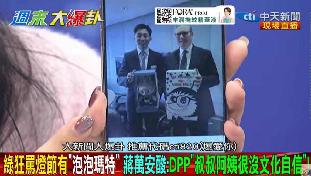 ▲徐巧芯表示,連英國(guó)首相斯塔莫都和泡泡瑪特老板王寧合照。(取自中天電視周末大爆掛)
