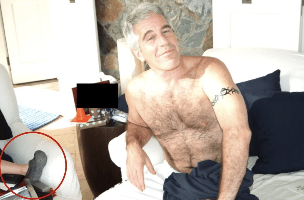 《紐約郵報(bào)》的其中一張愛潑斯坦檔案照中,愛潑斯坦赤裸身體坐在梳化床上,旁邊的座椅有一只疑似小童的腳。