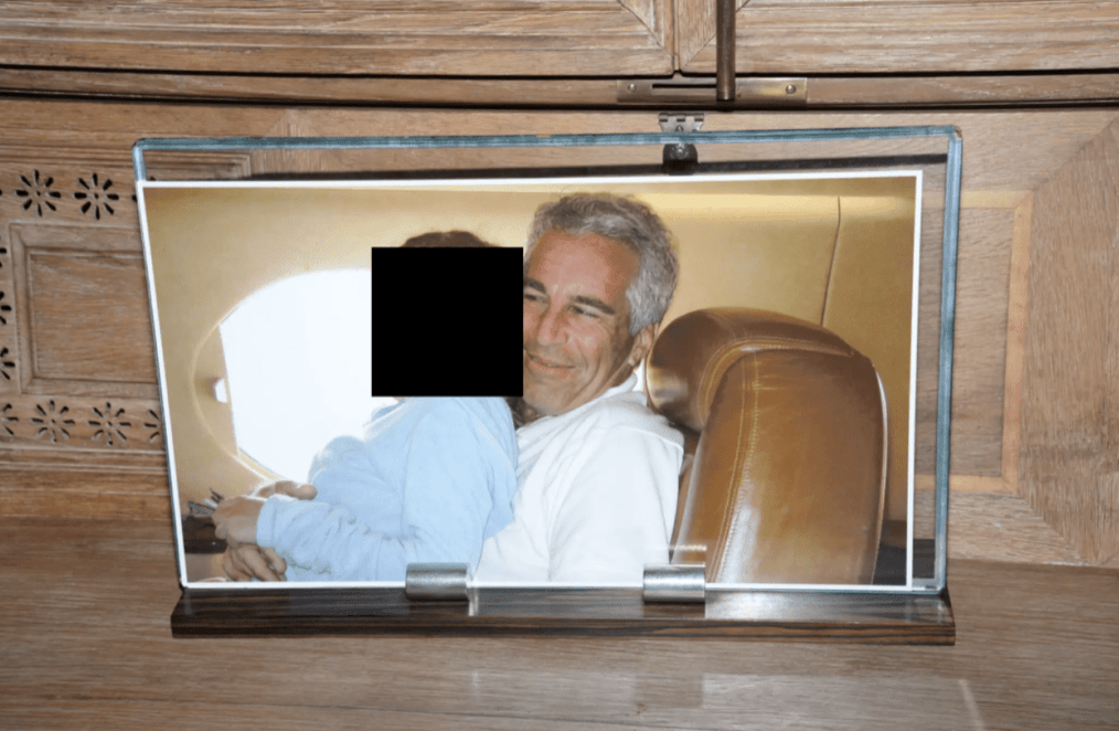 據(jù)《紐約郵報(bào)》報(bào)道,該照片來源及拍攝地點(diǎn)未明,愛潑斯坦當(dāng)時(shí)身穿白色T恤及黑色運(yùn)動(dòng)褲,褲上繡有“LSJ”字樣,被指或代表其私人島嶼“小圣詹姆斯島”。照片公開前,女子的身體及畫中嬰兒的生殖器部位已被官方用黑格遮蓋。