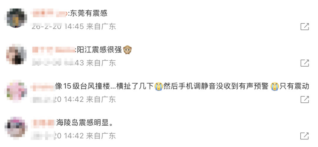 對此,廣東多地網(wǎng)友表示有震感: