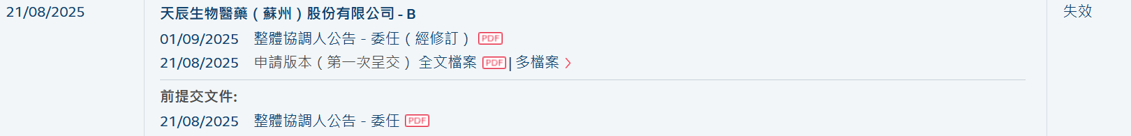 天辰生物醫(yī)藥(蘇州)股份有限公司(簡稱:天辰生物醫(yī)藥)于2025年8月21日所遞交的港股招股書滿6個月,于2026年2月21日失效,遞表時國金證券(香港)為獨家保薦人。