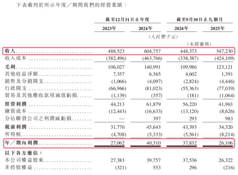 業(yè)績(jī)方面,2023年、2024年以及2025年前九個(gè)月,錦欣康養(yǎng)收入分別約為4.89億元、6.05億元、5.47億元;期內(nèi)利潤(rùn)分別為2706.2萬(wàn)元、4031萬(wàn)元、2610.6萬(wàn)元。毛利率分別為21.7%、23.3%、22.5%。