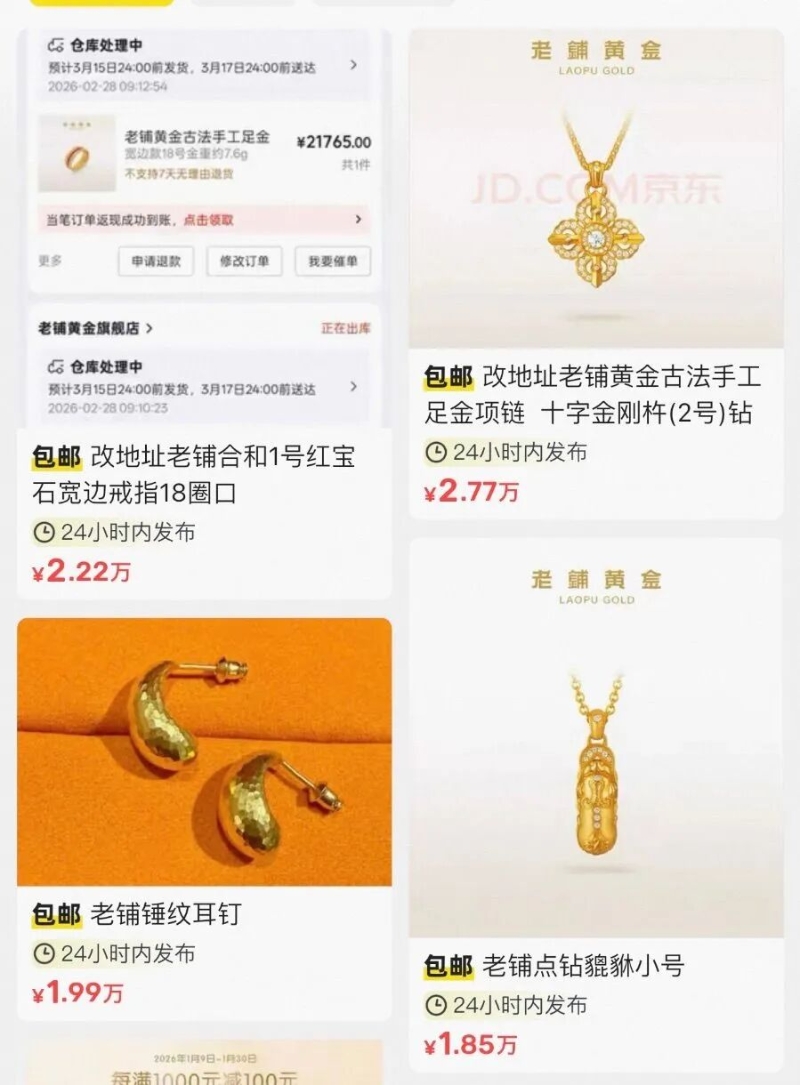 “老鋪黃金只剩下鋪和柜姐了,空空如也,不僅素金沒了,劃算的點鉆也沒了?!崩箱侟S金開年調(diào)價前夕,社交媒體上流傳這樣的說法。