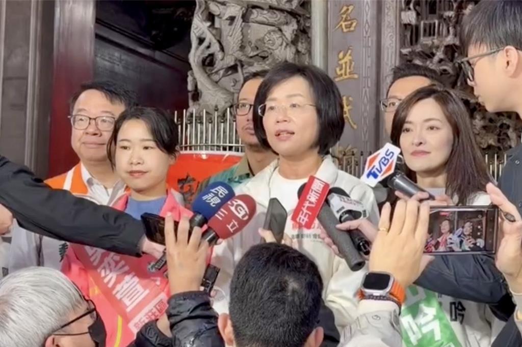 ▲民進黨新北市長參選人蘇巧慧1日在新莊武圣廟受訪。