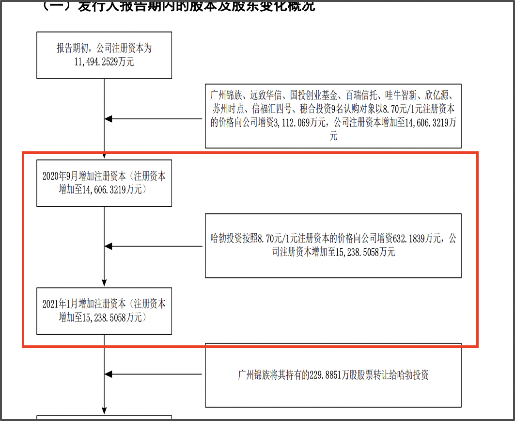 值得注意的是,華為系的哈勃科技創(chuàng)業(yè)投資有限公司(以下簡稱“哈勃投資”)也在前十大股東之列,持股比例為5.16%。招股書顯示,在2020年9月錦藝新材的第一次增資中,哈勃投資按照8.70元/1元注冊資本的價(jià)格向公司增資632.18萬元;2021年1月第二次增資中,廣州錦族將其持有的1.51%股權(quán)轉(zhuǎn)讓給哈勃投資,交易作價(jià)500萬元。