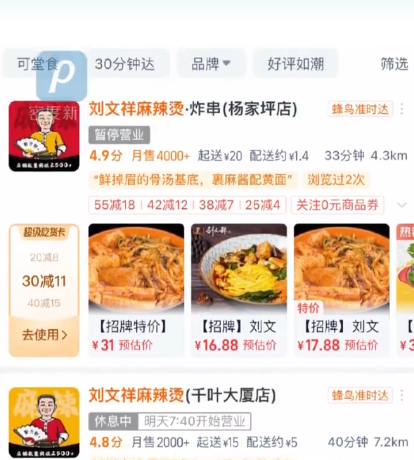 據(jù)密度新聞,不少劉文祥麻辣燙門店因“爆單”暫停營業(yè),有網(wǎng)友稱就連麻辣拌配料都已售罄。