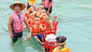 從小就會劃龍舟!5月28日下午,在汕頭澄海的西社村泳池中,一場迷你龍舟賽正如火如荼開展,平均年齡僅5歲的男娃女娃同池競賽、水中爭冠。