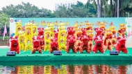 6月2日,第九屆廣州青少年醒獅表演賽在荔灣湖公園水上舞臺火熱開賽!啟動儀式上,56位來自粵港澳大灣區(qū)的學子舞動28頭醒獅,擺出“十五”字樣,象征著56個民族緊密團結(jié),共同迎接“十...