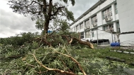 強臺康妮挾帶兇猛風雨,臺灣各地出現(xiàn)災情,連臺北市南港區(qū)購物中心CITYLINK的“大樹爺爺”也被吹倒“提早退休”。
