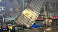 康妮臺風31日帶來強風豪雨,新北市三重區(qū)永安北路一處老舊民宅不堪一擊,頂樓女兒墻被吹倒,直壓樓下住戶陽臺,所幸無人傷亡。