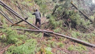 康妮臺風釀成新北市部分山區(qū)大量樹竹嚴重倒塌壓損供電設備。
