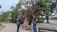 花蓮百年榕樹“罹癌”不敵康妮倒地,縣府急切氣根續(xù)命