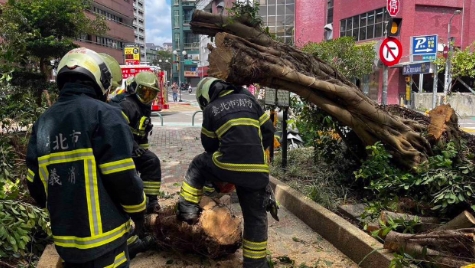 臺北3米巨樹不抵強風倒塌,2騎士險遭壓自摔受傷