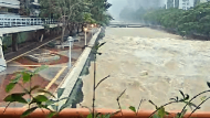 傾盆大雨持續(xù)不斷,全港多區(qū)出現(xiàn)嚴(yán)重水災(zāi),沙田城門河變激流洶涌澎湃,猛烈沖擊兩岸,橫跨城門河的美林商場(chǎng)天橋變“觀潮臺(tái)”,橋下河水滔滔,怒濤涌入較低橋面,市民紛紛拍下這百年不...