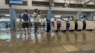 港鐵黃大仙站月臺(tái)頂部仍滴水,職員擺“水桶陣”保乘客安全