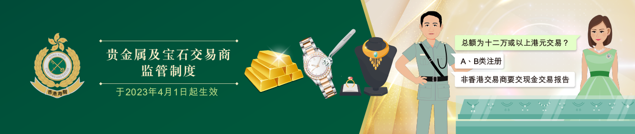 為進(jìn)一步打擊洗錢及恐怖分子透過不同渠道籌集資金,香港海關(guān)將于2023年4月1日起執(zhí)行“貴金屬及寶石交易商注冊制度”,規(guī)定進(jìn)行港幣12萬或以上交易的貴金屬及寶石交易商須向海關(guān)關(guān)長注...