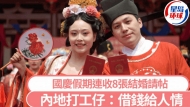 國慶期間,內(nèi)地民眾可享一個(gè)長假期,不過有網(wǎng)民反應(yīng),假期間收到多張結(jié)婚請(qǐng)?zhí)粑凹t色炸彈”也讓一眾打工仔帶來不小經(jīng)濟(jì)壓力。