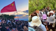 在廣東深圳,在國慶假期首日(10月1日),眾多游客前往梧桐山游玩,部分游客選擇在晚上爬山看日出。 可在到達(dá)山頂后,有游客發(fā)現(xiàn)放眼望去全部都是人,自嘲腳都不知道往哪里放,上去的...