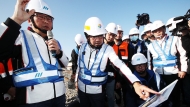 新北市長(zhǎng)侯友宜今(14)日一早視察捷運(yùn)三鶯線工程,昨日敗選絲毫沒有影響到他的心情,精神抖擻的聆聽簡(jiǎn)報(bào)。