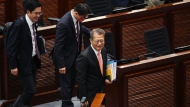 行會非官守議員到立法會,聽取財政司司長陳茂波宣讀新一份預算案。