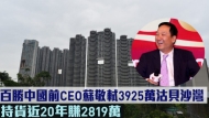 百勝中國前CEO蘇敬輝3925萬沽貝沙灣,持貨近20年賺2819萬