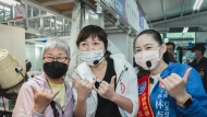 臺灣黃金倒數(shù)48小時,國民黨臺北市長候選人蔣萬安懷有6個月身孕的妻子石舫亙24日陪同臺北市議員候選人林杏兒,前往北投區(qū)中繼市場向攤商、民眾拜票。