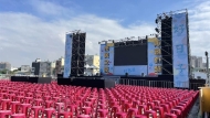 明天就要投票了,無黨籍臺北市長候選人黃珊珊在25日晚間7點在臺北市政府前舉辦“捍衛(wèi)新價值,擺脫舊勢力”選前之夜造勢晚會,下午6點多現(xiàn)場擺放4000張椅子,已有數(shù)百位民眾穿著輕便雨...
