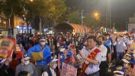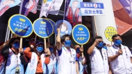繼續(xù)挺??!民進黨臺北市長候選人陳時中在選前的“超級星期天”舉辦為愛而走臺北大游行,吸引上萬名支持群眾上街。