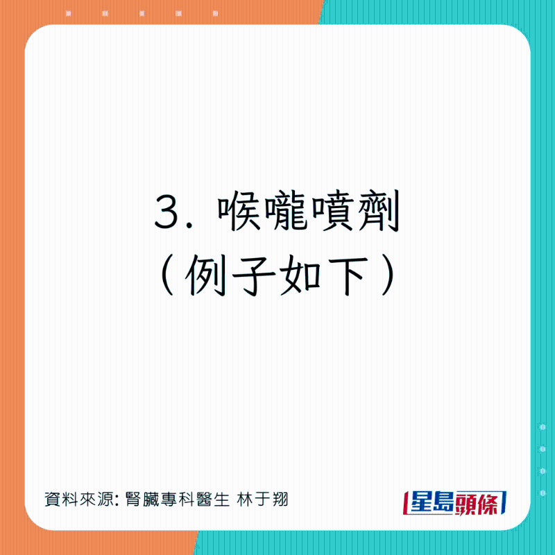 他曾試過10多種不同方法,包括服藥、喉嚨噴劑、喝飲品、進(jìn)食保健食品等,最后以自身經(jīng)驗(yàn)列出5個(gè)有助紓緩喉嚨痛的方法: