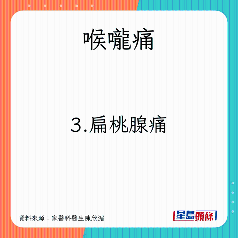 家醫(yī)科醫(yī)生陳欣湄指,喉嚨痛主要分3類并講解何謂扁桃腺發(fā)炎。