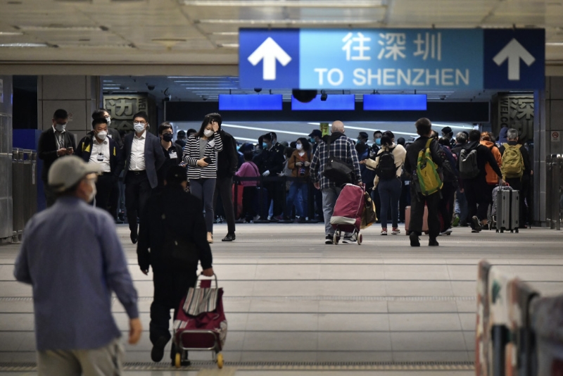 港鐵東鐵線首班開往羅湖站的列車于早上5時(shí)35分由沙田開出,不少市民上車,列車抵達(dá)上水站時(shí)更多乘客登車,約5分鐘終于到達(dá)羅湖站,市民魚貫落車,港鐵職員向市民派發(fā)口罩及酒精搓手液等紀(jì)念品,至早上6時(shí)30分,入境處職員拉起鐵閘,市民前去辦理離境手續(xù),正式踏入暌別三年的深圳。